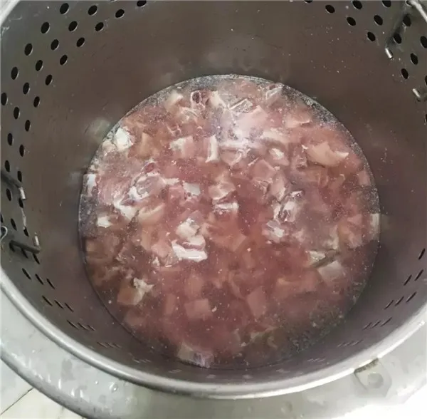 1.排骨2500克剁成长约4厘米的块纳盆,撒适量生粉,加清水没过,淋入陈村枧水(即食用碱水,用其腌制肉类可使质地更松软)35克腌制45分钟,捞出冲净后沥干。