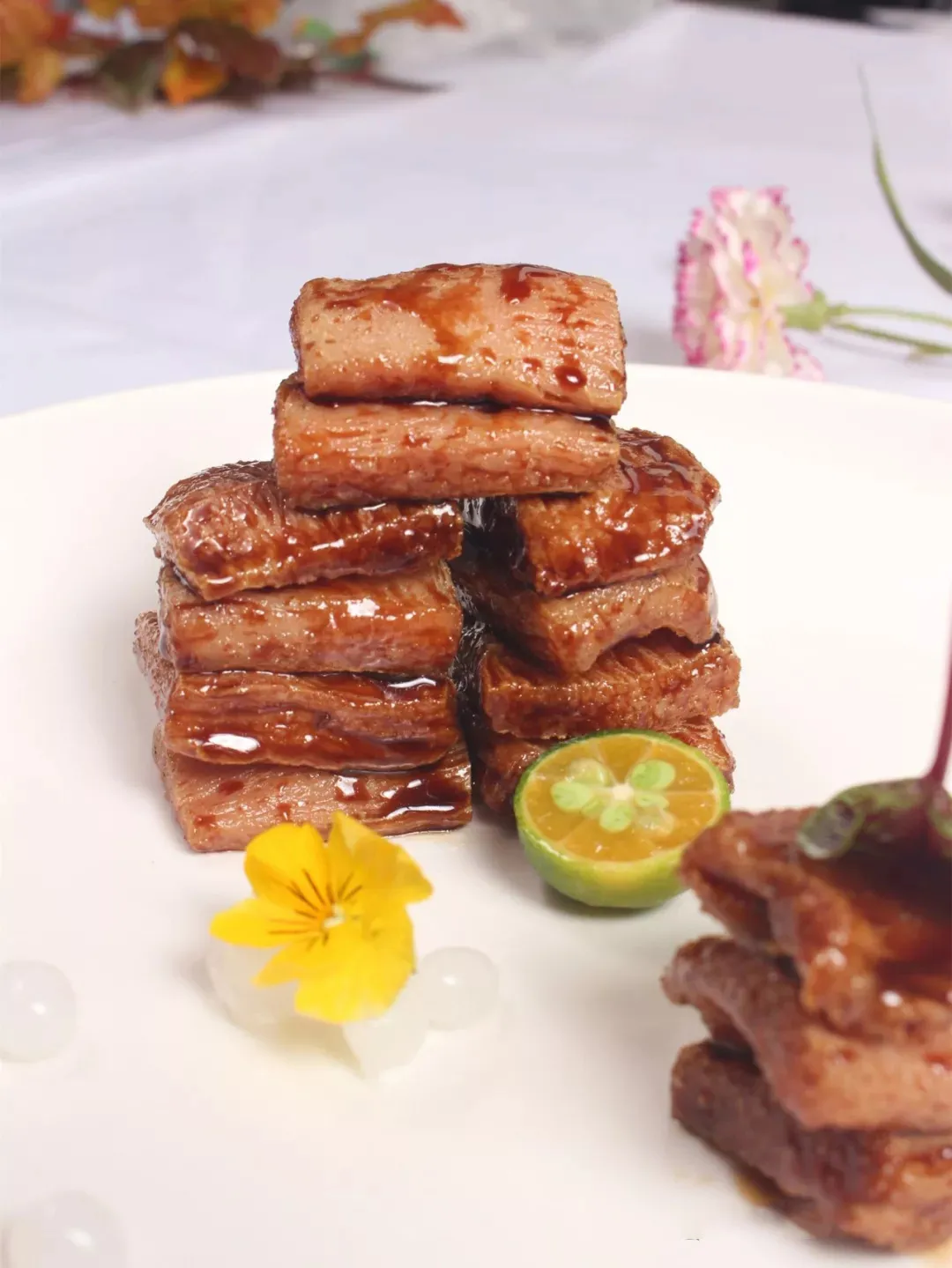 炎炎夏日,人们大多喜欢吃“酸”来开胃解暑。这款猪颈肉以秘制醋汁调拌而成,制作时原料先蒸后炸,成菜外酥里嫩,酸香多汁。