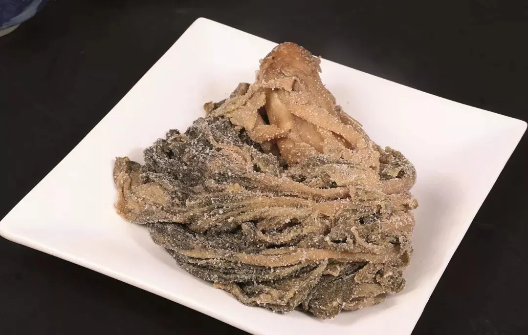 这道菜是顺德根哥美食新推出的一款热卖菜肴。与通常将牛鞭煲汤或者制作热菜不同,梁师傅将这种备受好吃嘴欢迎的食材加工成了凉菜,牛鞭富含胶原蛋白,压熟后迅速投凉,上桌时垫上冰沙,蘸着青芥辣调成的酱汁食用,别有一番风味。