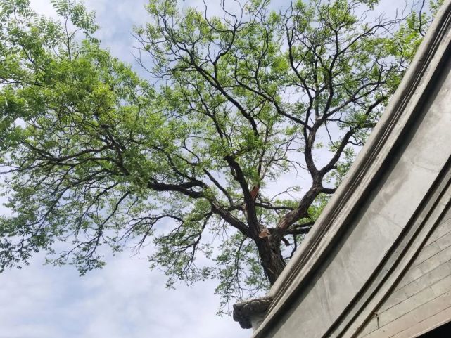 走入院门,方正的四合院就出现在眼前,门口的小廊别致典雅,倒挂楣子和什锦窗,足见设计的用心。院中与门口的树相互呼应,枝叶交覆,为院落撑开一片凉荫,莺鸟时鸣,蝉声高唱,仿佛儿时的夏日风情。