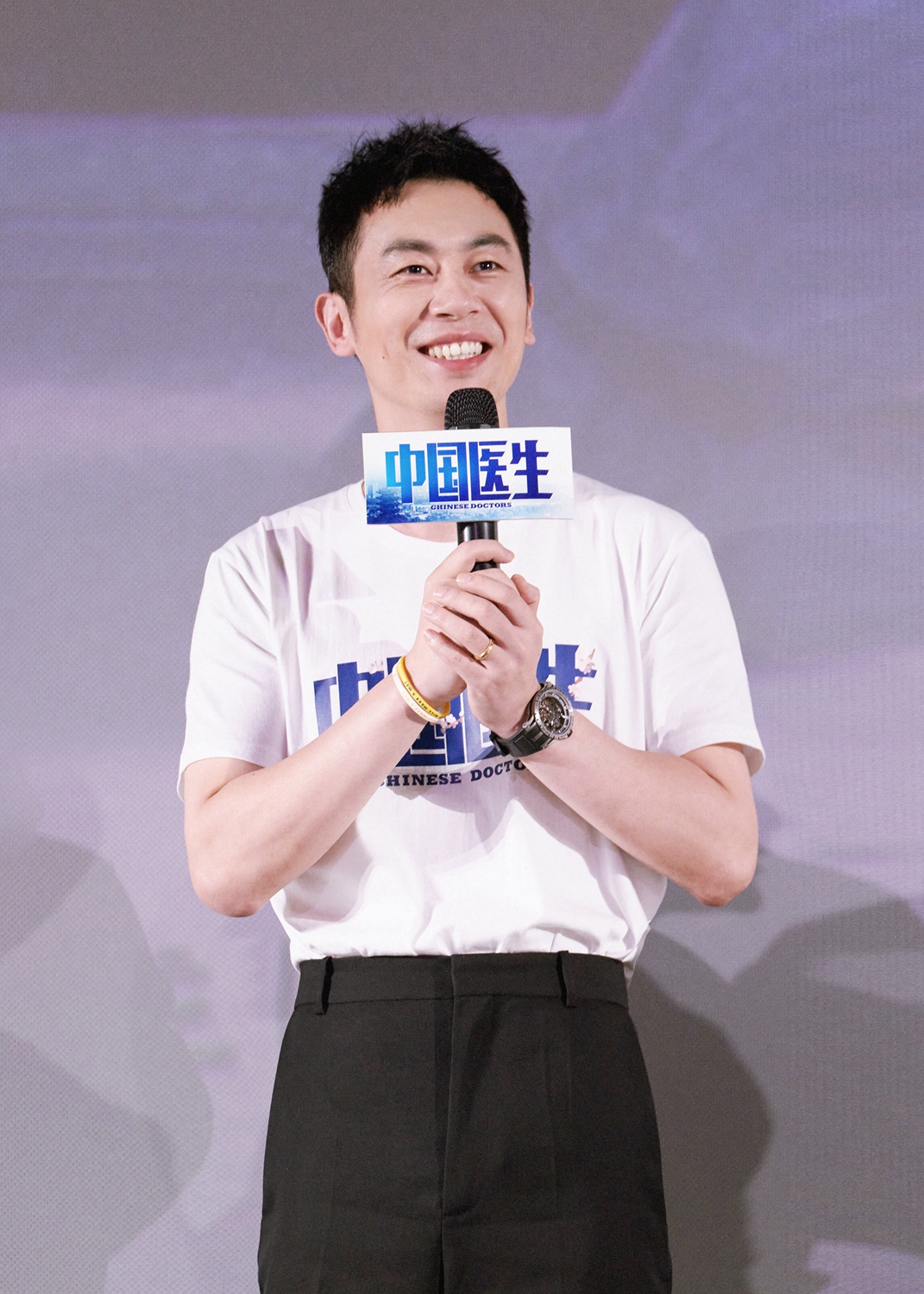 朱亚文在片中饰演广东援鄂医疗队的一名医生,说的是一口粤语味儿的普通话,他笑称这个口音跟导演刘伟强学的。