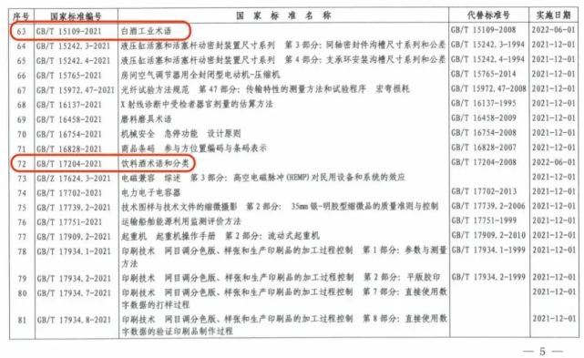 近日,国家市场监督管理总局(国家标准化管理委员会)发布了新修订的饮料酒、白酒相关国家标准《GB/T 15109-2021白酒工业术语》和《GB/T 17204-2021饮料酒术语和分类》。