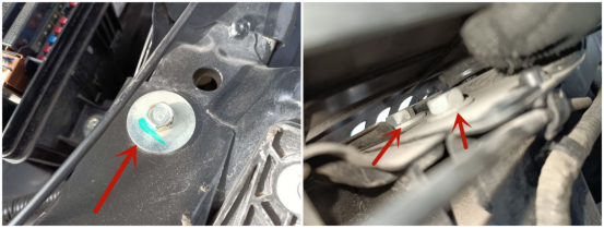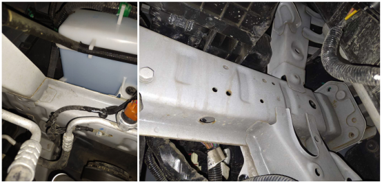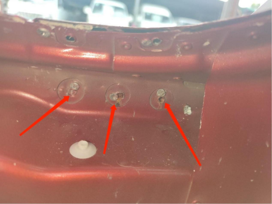 前大灯、水箱框架、前纵梁螺丝没有拆卸,焊点也没有异常情况。