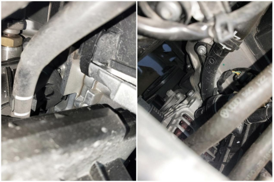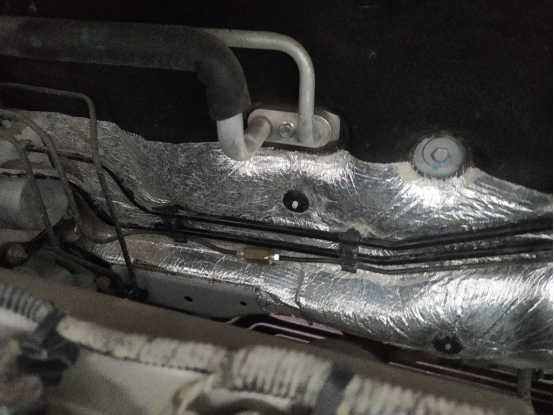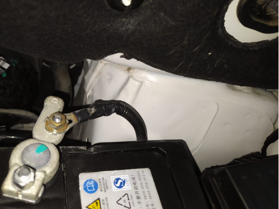 翼子板内衬、减震器座螺丝、钣金胶无异常,防火墙原厂隔音棉还在,看上去挺新的,固定螺丝也没有拆卸。