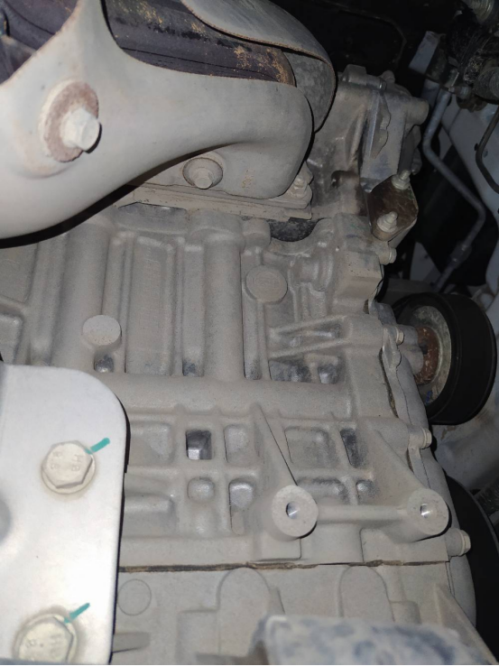 发动机气门室盖、发动机变速箱缸体无渗油痕迹,密封胶为原厂胶,固定螺丝无拆卸、拧动痕迹,原厂漆线还在,这个很直观,有做假的但很容易就能判断出来。