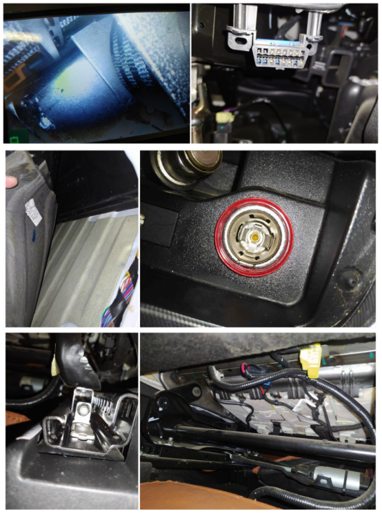 方向盘转向柱金属件没有生锈痕迹,旁边部件的螺丝没有拧动,原厂漆线无破坏迹象。