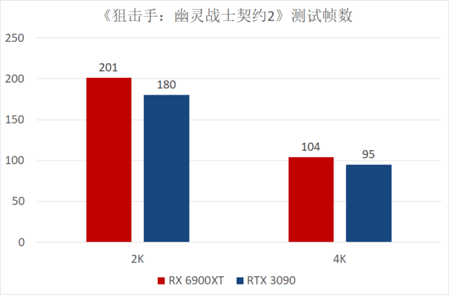 从测试结果上来看,AMD RX 6900XT在2K分辨率下的帧数最高突破了200帧,已经可以说非常流畅了,在4K分辨率下也可以达到104帧的平均值,平均领先了约10.6%的数据,遇到旗舰级显卡,《狙击手:幽灵战士契约2》也要臣服。