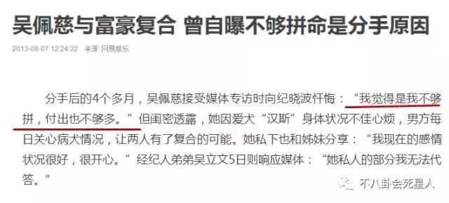 复合后的吴佩慈还在媒体前忏悔说之前分手是因为自己不够拼命,付出的不够多。