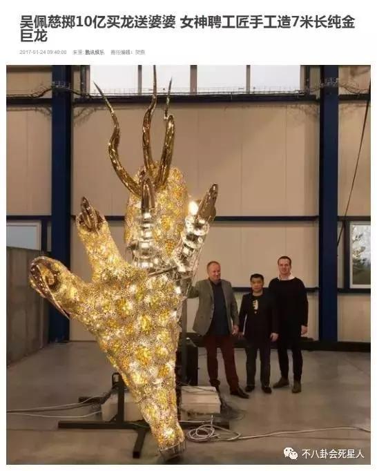 纪晓波妈妈酒店开业时,吴佩慈花了40亿打造了两条金光闪闪的巨龙作为开业礼物。