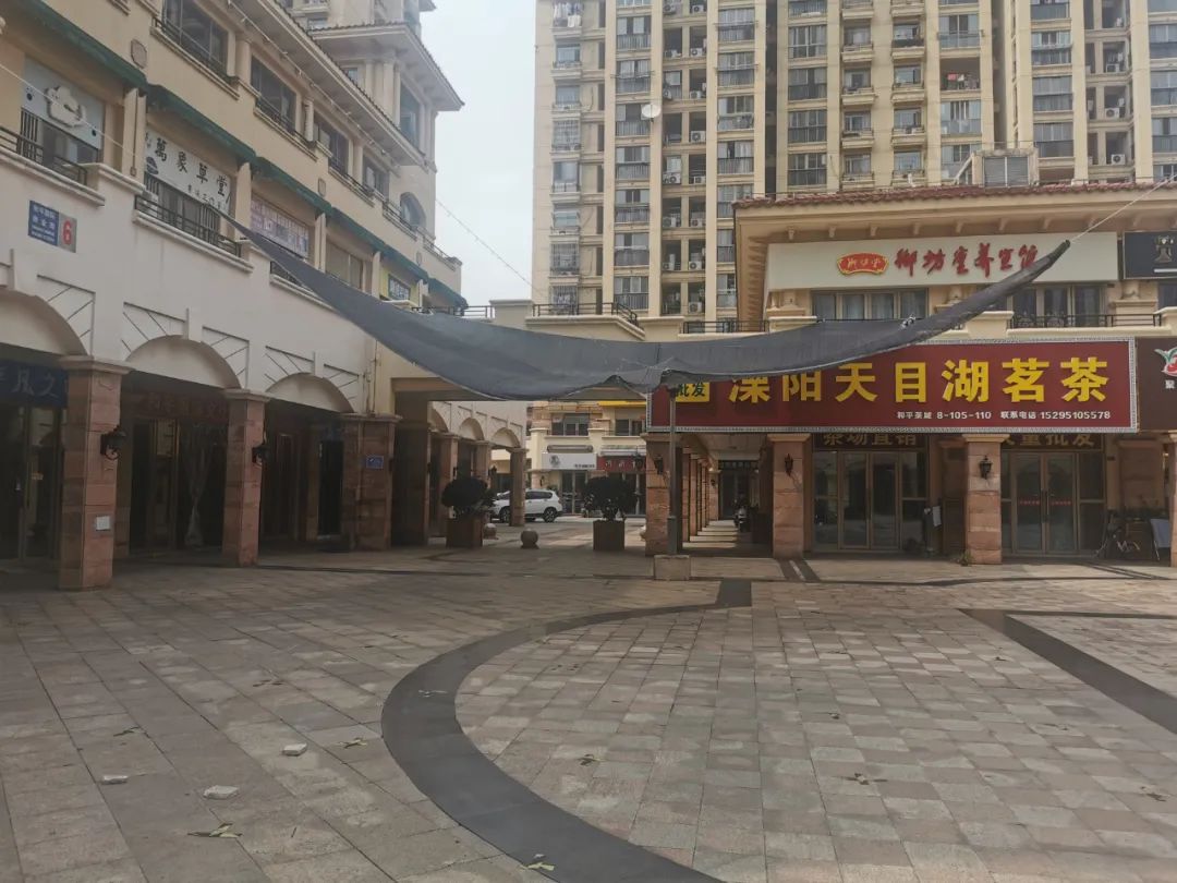 从现场来看,商业街一楼还有些商店开着,尽管人气不佳,但好歹还有店铺支撑。