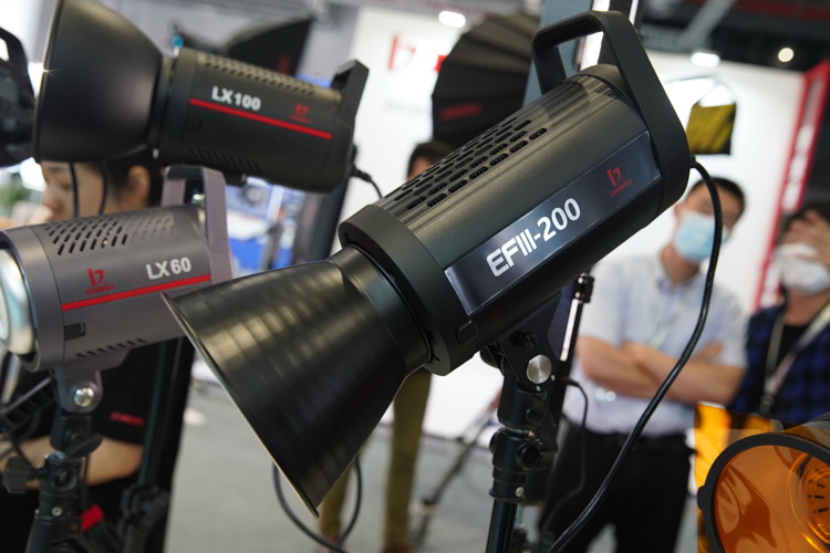 EFIII-150/200是定位专业的LED灯,它们采用了一样的外观设计,前者输出功率为150W、裸灯照度大于6850Lux,后者输出功率为200W、裸灯照度大于8650Lux,显色达到了Ra>97、TLCI>98,色温为5500±200K,支持电视、坏灯泡、烟花、雷电(1、2、3)、闪光(1、2、3)多达9种光效,支持无线控制以及内置蓝牙,带有静音风扇,保障长期稳定运行。