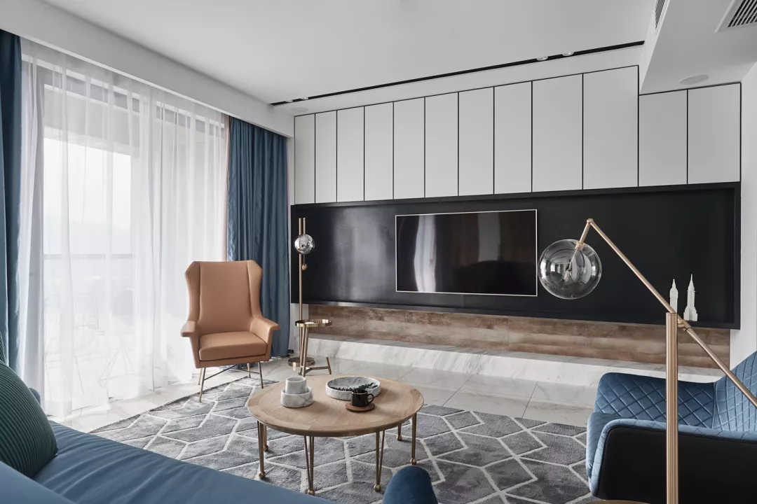 小户型的收纳也是一个大问题,所以很多屋主都会利用电视背景墙来做收纳,整墙做柜子有着足够的储物空间,电视嵌入柜子看起来也很有整体感。