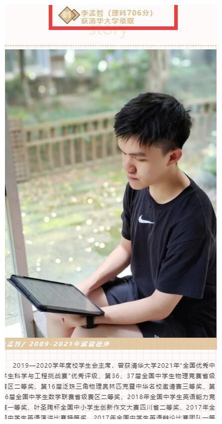班主任还提到了娜娜侄子谢和德阳理科状元李孟哲的关系。他们不仅是竞争对手,更是好朋友。这是娜娜第二天提到的。谢怀瑾和他的同学被清华大学录取了。娜娜的侄子和状元李孟哲从小学开始就是同班同学。李孟哲高考考了706分,也是一个非常优秀的学生。