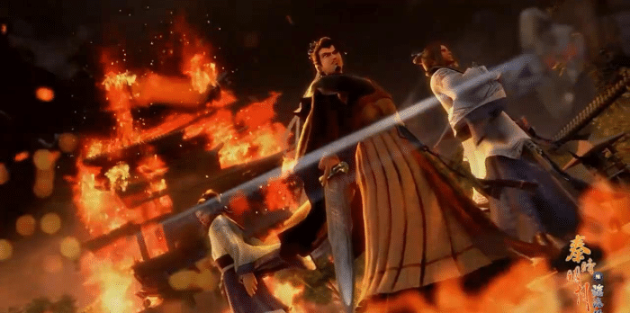 胜七正在树林里行走,六剑奴忽然出现,将他包围。胜七正在警惕的打量六剑奴,一个声音忽然响起:“你是不是很奇怪,以你这样的身手,居然也没有感觉到他们是什么时候在你身边出现的。他们的气息是融合到一起的,当你感觉到其中一个的时候,其实已经陷到六个人编织的罗网中了。”“什么人,给我出来!”胜七左右扫视。一只雪白枯长的手从他背后伸出,拍了拍他的左肩。胜七猛然转头,身后之人却已不见。下一秒,赵高出现在胜七的右侧。