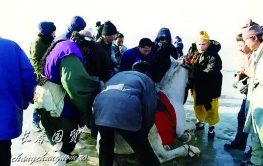 有一次在九寨沟拍摄盘丝洞那集,剧组拍完了瀑布下面的戏,准备拍师徒四人在瀑布上面行走的镜头,也就是《西游记》片尾曲很经典的那个画面。在上坡的路上,水流湍急,石头湿滑,马滑倒了,躺倒在乱石沟的缝里,动弹不得。山沟里淌着急流的水,冲击着白龙马,一群人挤在那里,不管费多大劲也拉不出来,大家都慌了手脚。这时候来了一个藏族的牧民,他让养马师傅把马鞍先卸了,让马休息一会儿。他拉着马的缰绳,发出一声号令,大家一起使劲,噌的一下,马一下子从乱石沟湍急的水流里站了起来,周围的人都激动的为白龙马鼓起了掌。