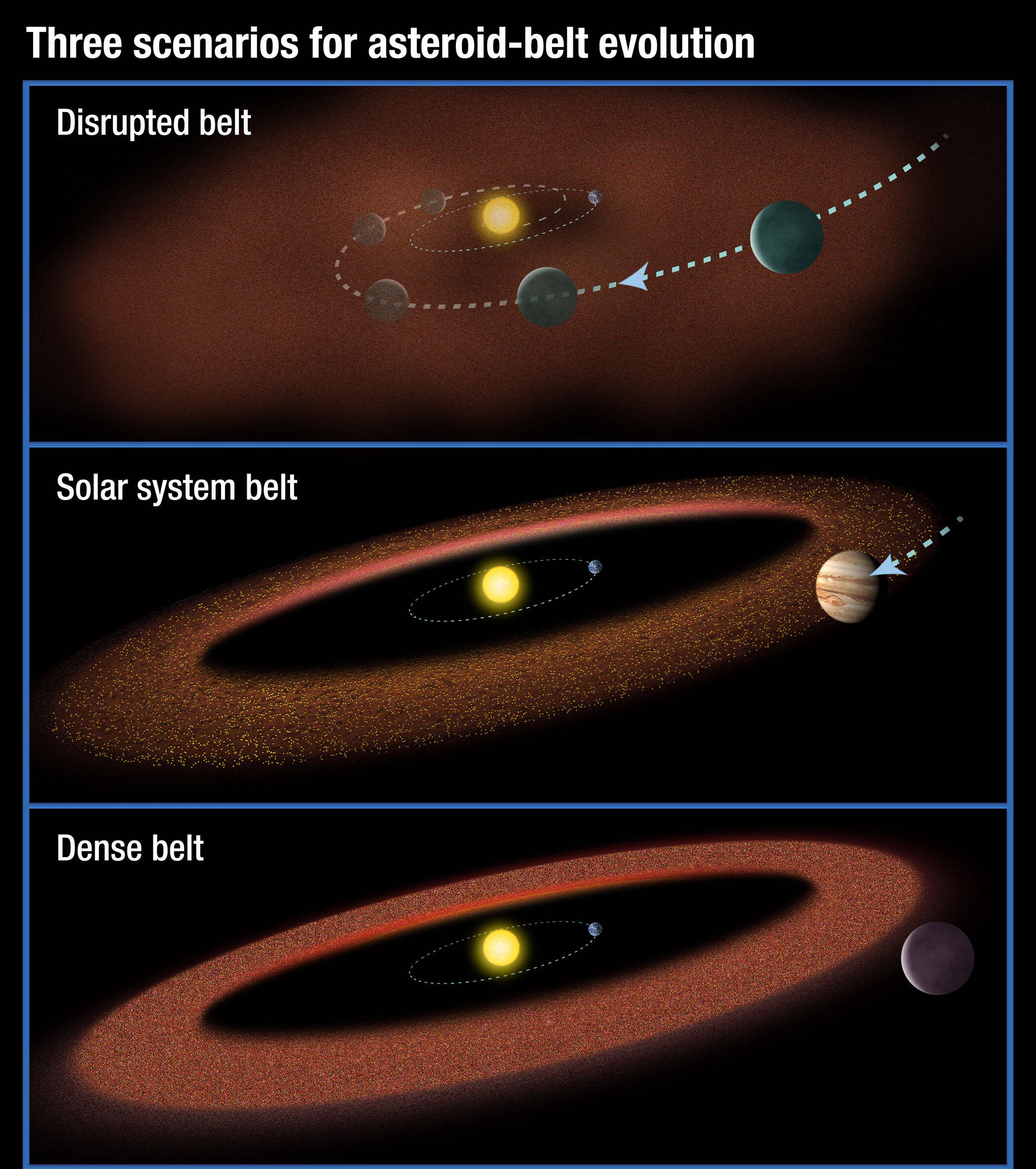 当太阳系形成的时候,很多事情都在木星这里得到了结束。大约45亿年前,在一个著名的创造故事中,巨大的尘埃和岩石云在重力的作用下聚集在一起形成行星,但是木星变得非常巨大,以至于它的重力直接影响了附近岩石的移动方式为了防止附近的岩石合并成一个完整的世界,有些岩石时不时地发生碰撞,部分岩石最终成为木星众多卫星中的一个,大多数卫星与气态巨星保持着恒定的距离,因此它们形成了这个带.