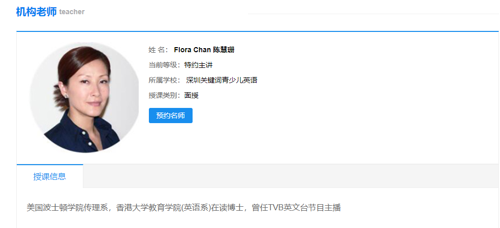 最近,有网友发现,曾经TVB当红花旦陈慧珊的名字,竟然出现在某英语培训机构老师名单中。