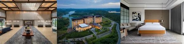 从左至右:酒店大堂、酒店外观以及客房