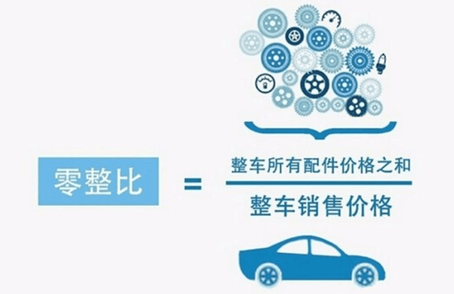 "汽车零整比系数"是车辆配件价格总和与整车销售价格的比值(零件拆开卖的价格除以整车价格即为零整比);直观反映不同车型维修成本的差异,即在整车价格一定的前提下,零整比系数高的车型,维修成本较高;反之则表明该车型维修成本较低。