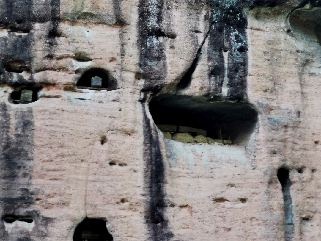 听完他的介绍,我不禁又抬头望了望悬棺,悬崖凹凸不平且湿滑,别说放沉重的棺木了,就算徒手攀登都很难。在不发达的古代,这些棺木究竟是怎样放上去的呢?它们的主人又是谁呢?遂勾起了我极大的好奇心。
