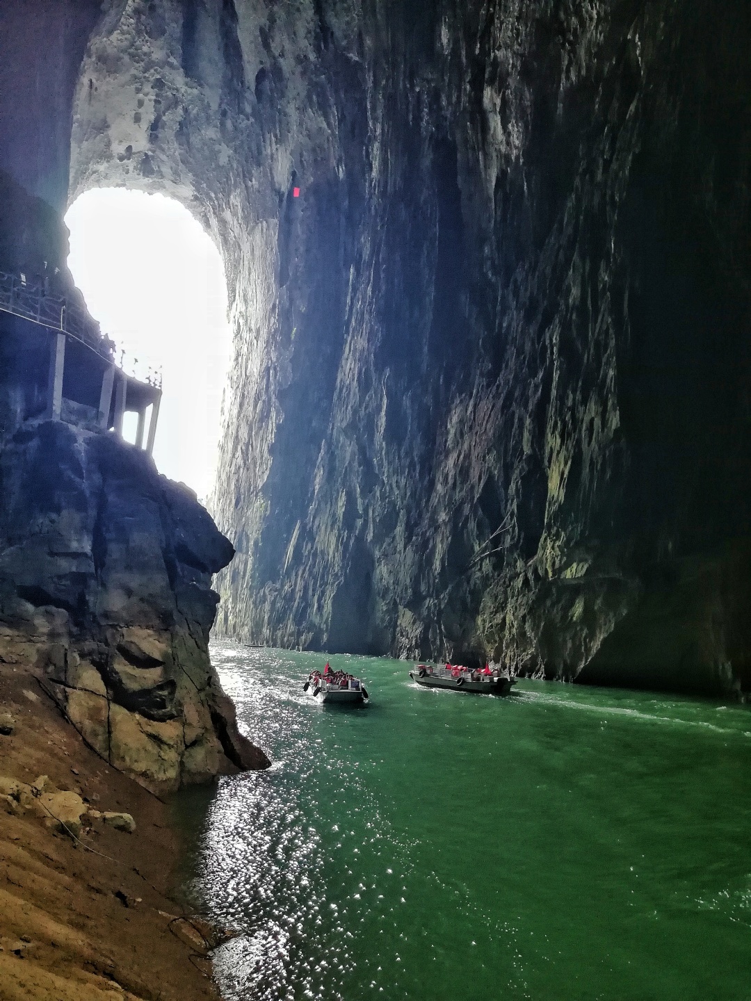 我曾多次游览格凸河,在静谧的风景之外,印象最深的是那些放在悬崖洞穴内的棺木。坐船顺着夹在喀斯特地貌间的格凸河而行,到了天星洞方可见天日,这时能清晰地看到一侧旱洞内的悬棺,距离河面约二十多米的高度,密密麻麻地分布着,给人以神秘之感。