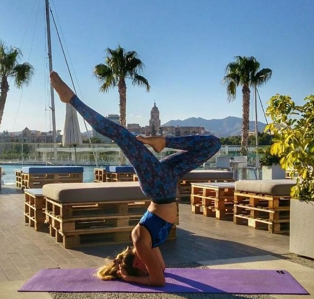 在这个姿势中,首先需要完成轮式的动作,然后慢慢将身体的重心转移到手臂上,然后抬起你的双脚,左脚弯曲,右脚要伸直,眼睛直视地面,保持平衡即可。