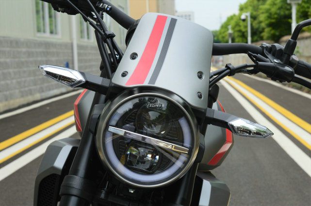 首选是车头部分增加了小的风挡,虽然并不会起到什么实际作用,但是增添了不少复古韵味,强化了CBF190TR的复古印象。