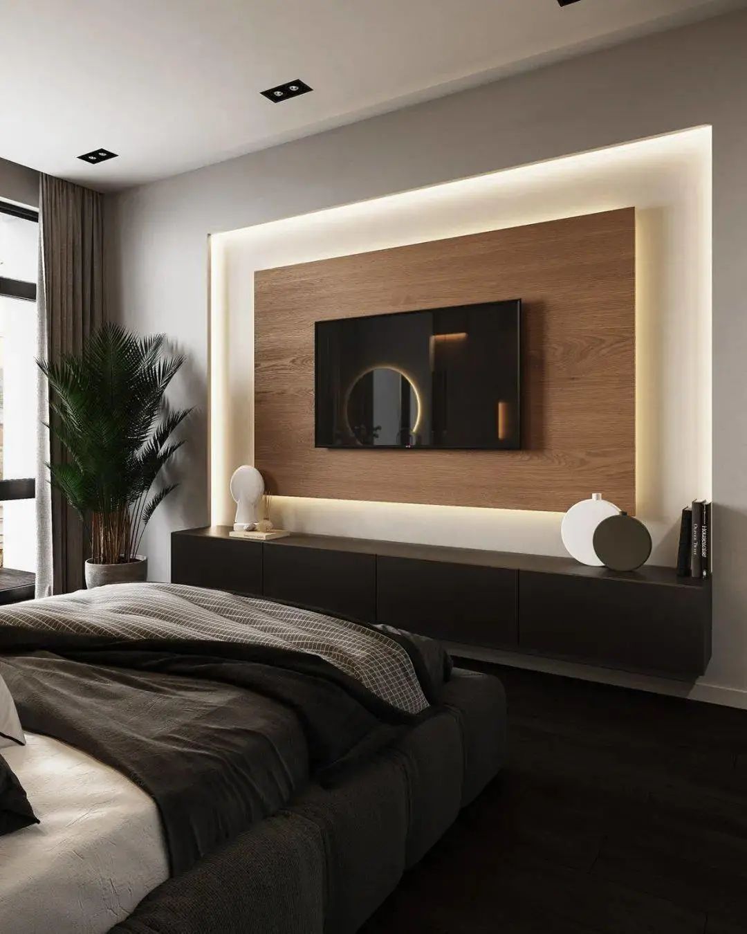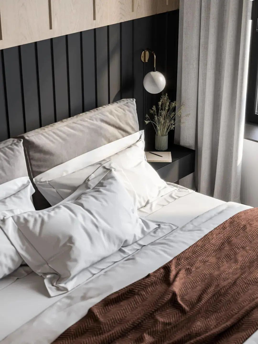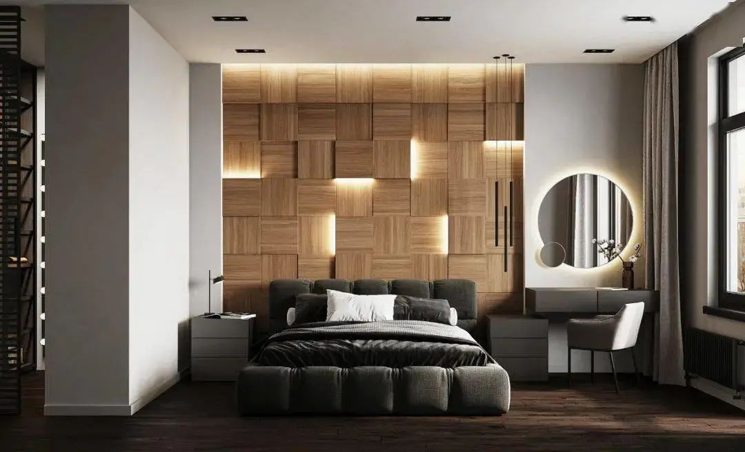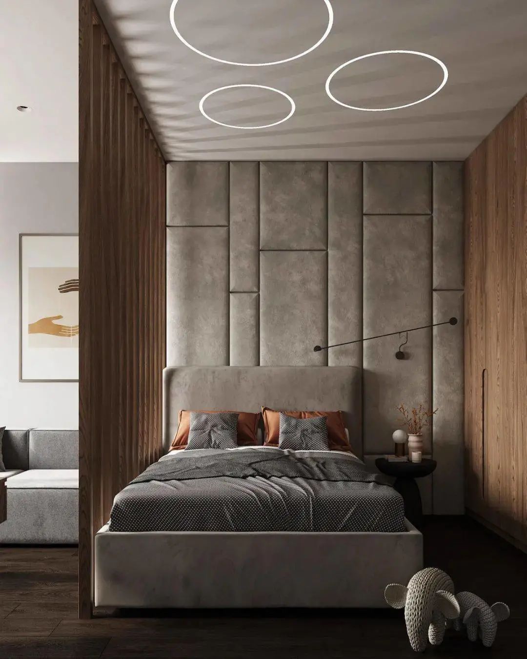 极简风的卧室以舒适、平静、自然为原则,没有繁杂冗余的装饰,极具现代气息的床头背景墙,内嵌精巧又美观的灯光,展现了设计师不俗的能力。