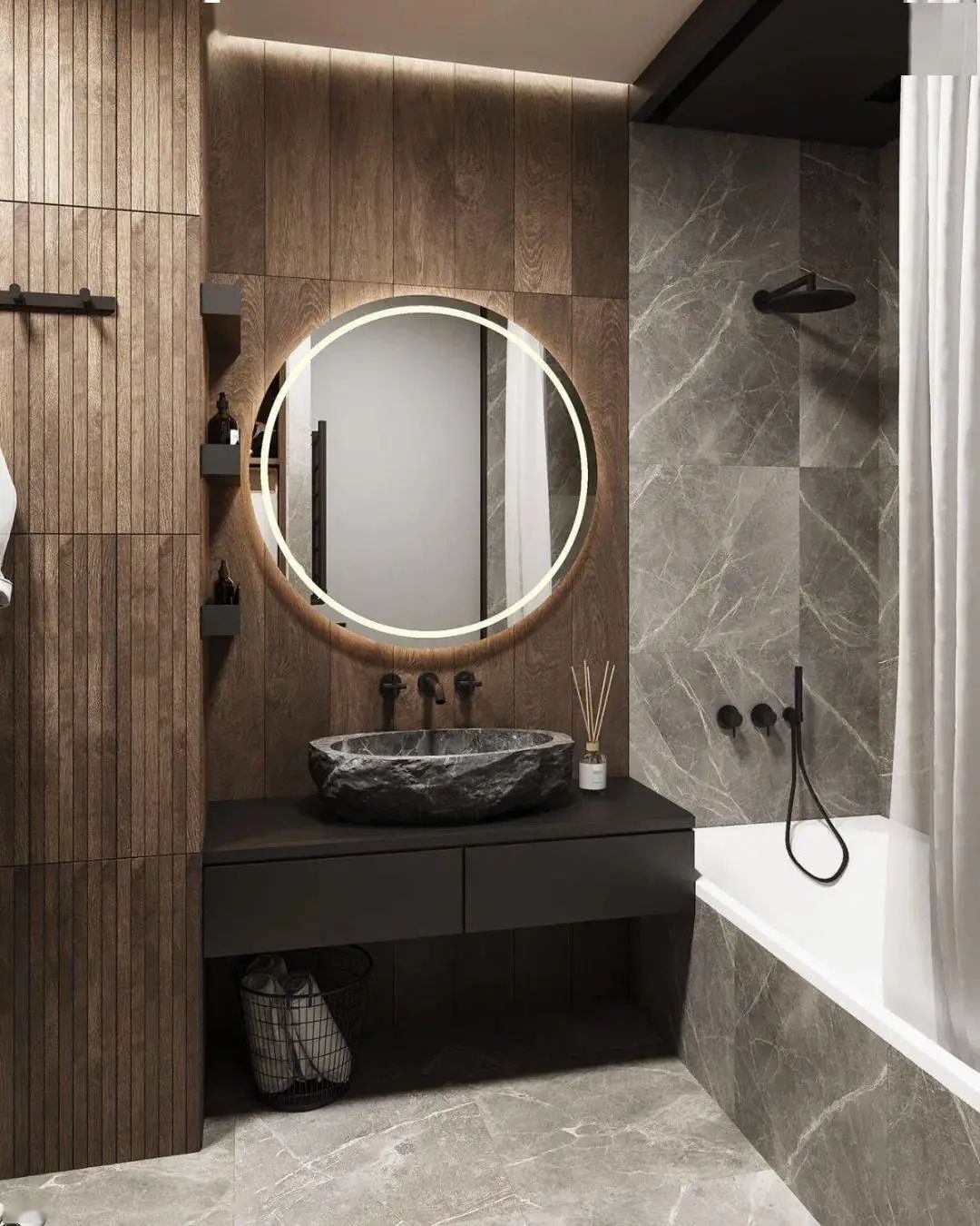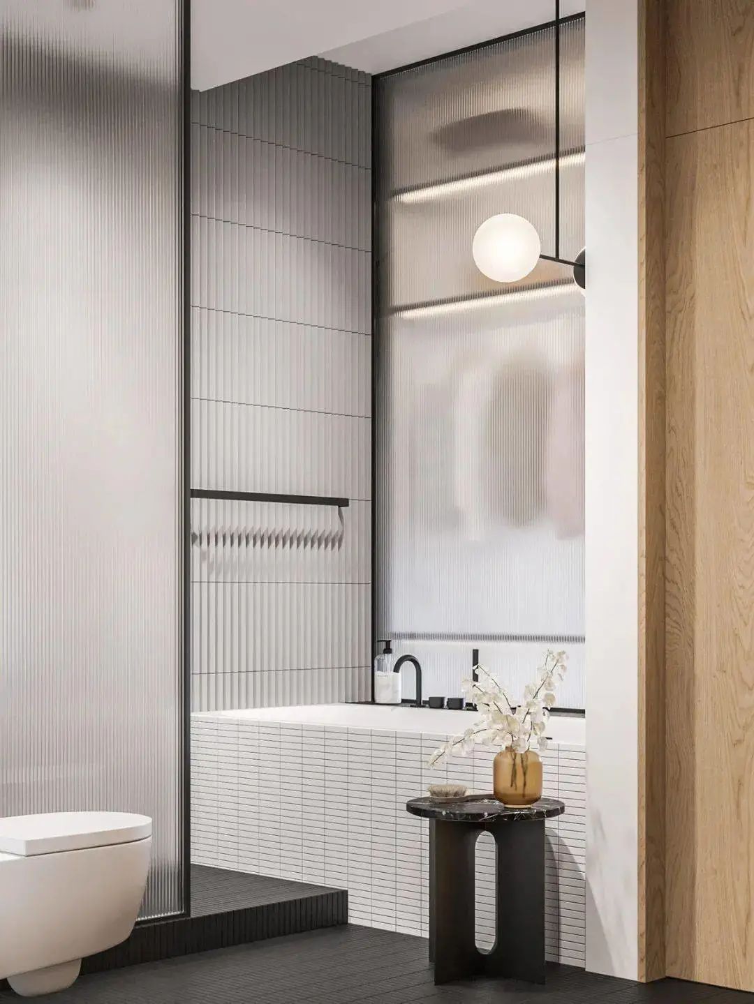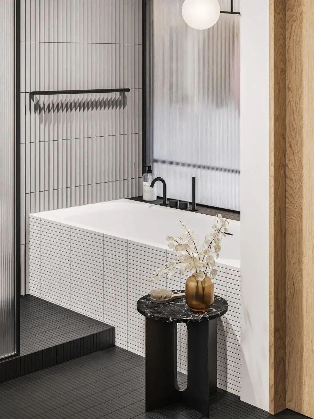深色调的玄关,镜子的陈设让视觉更加丰富多变,清新怡人香薰、蜡烛以及黑色的陶瓷摆件,处处体现着精致。