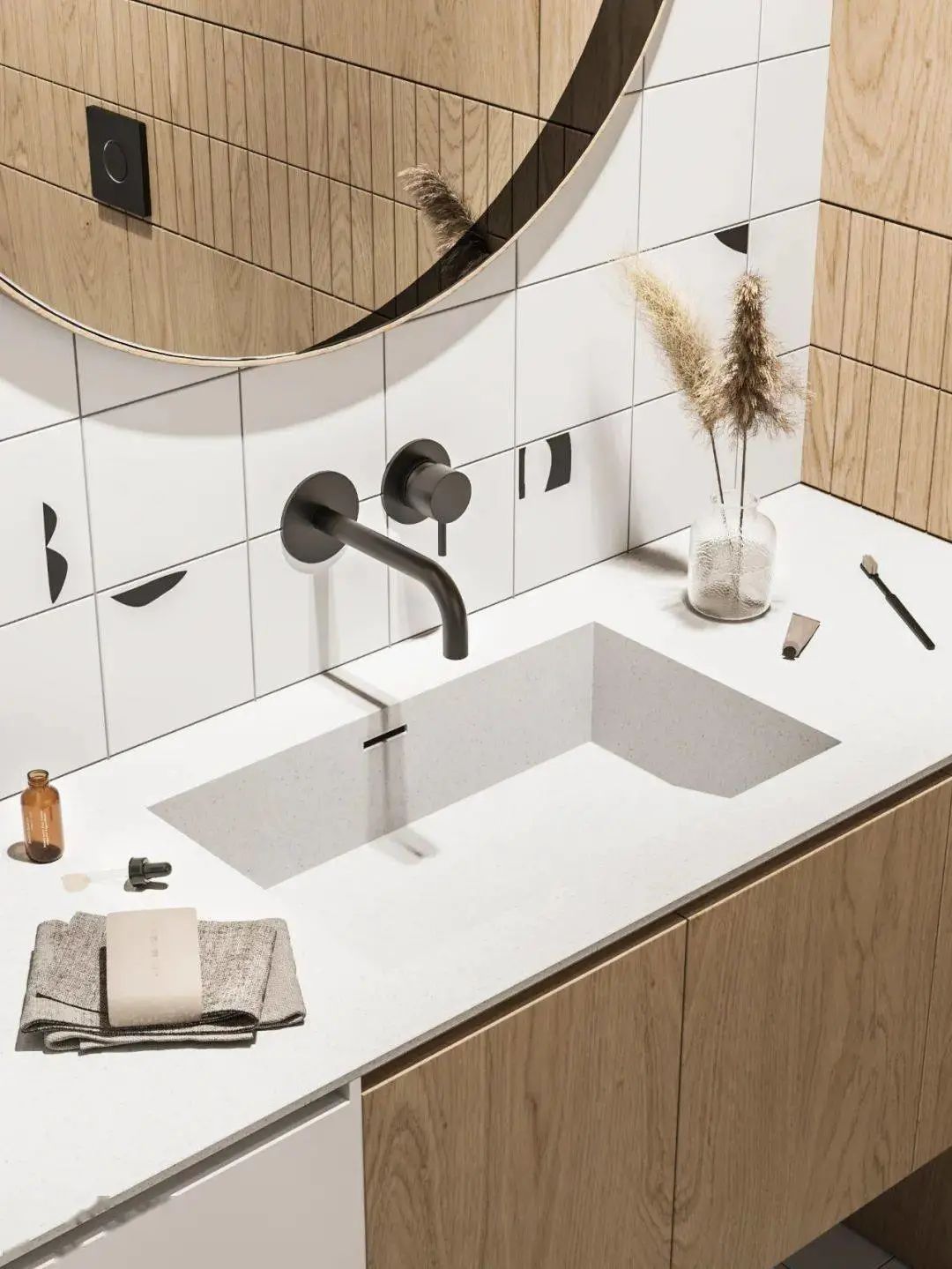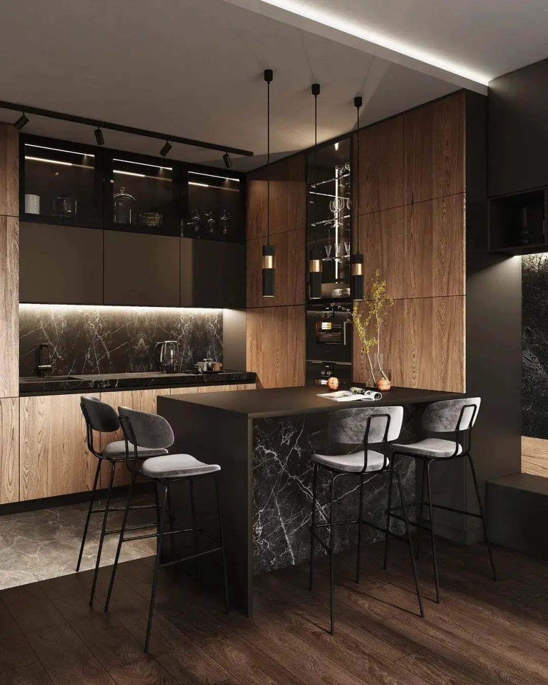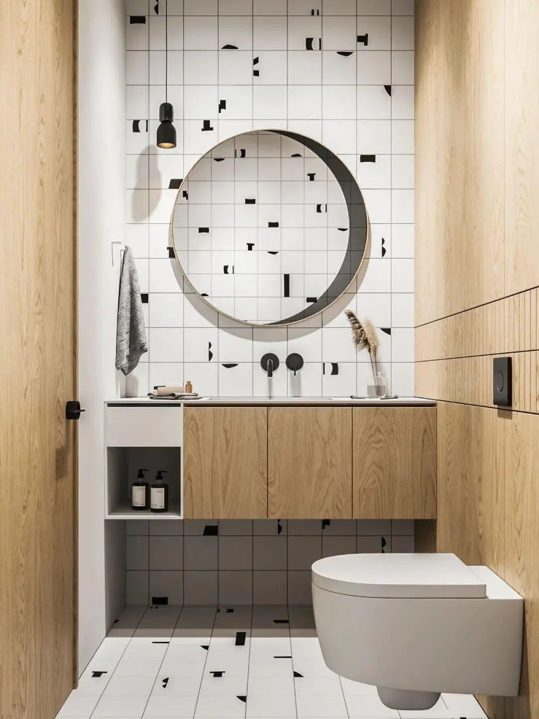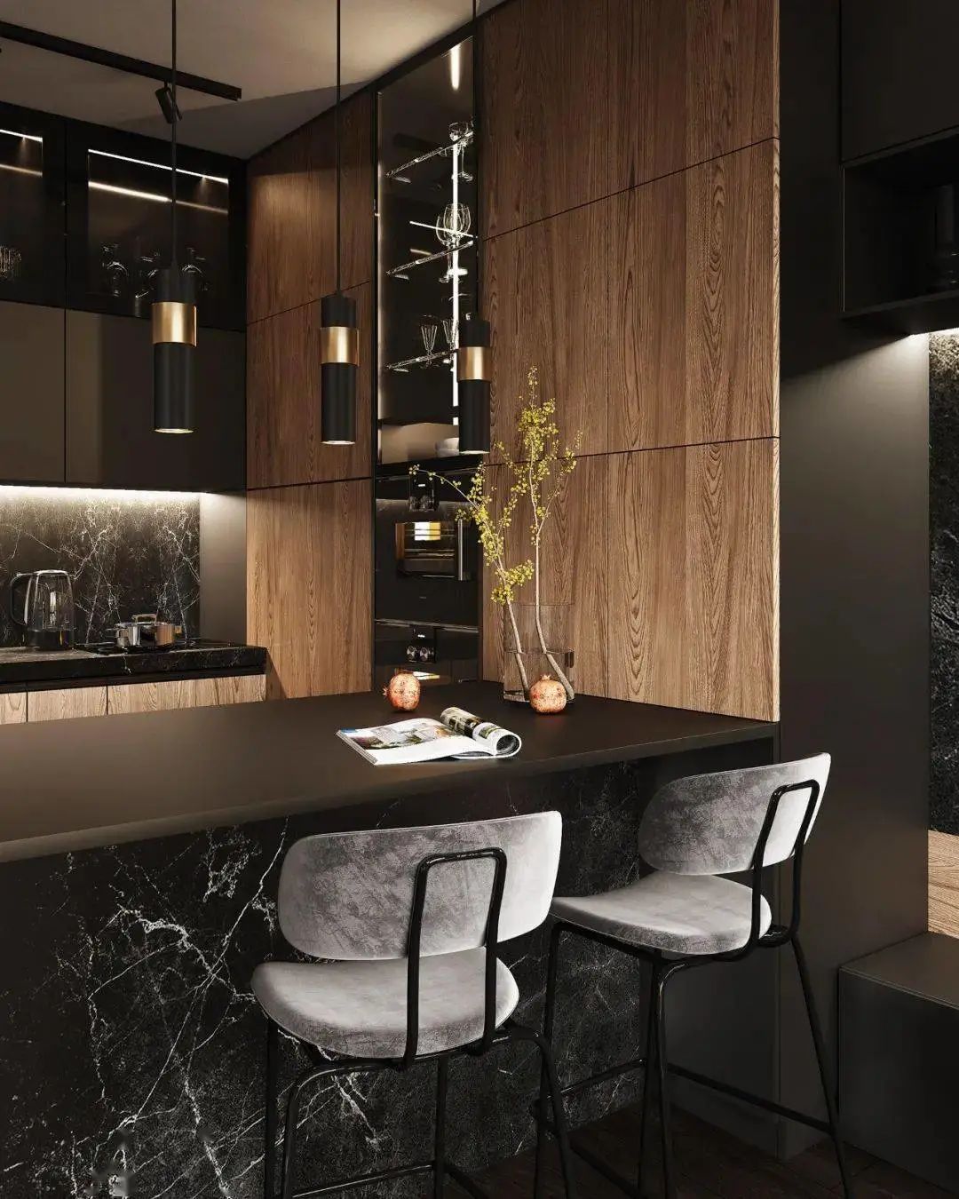 深色调的玄关,镜子的陈设让视觉更加丰富多变,清新怡人香薰、蜡烛以及黑色的陶瓷摆件,处处体现着精致。