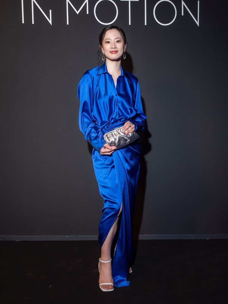 李梦亮相戛纳Women in Motion颁奖礼 穿宝蓝色丝绸裙妩媚动人