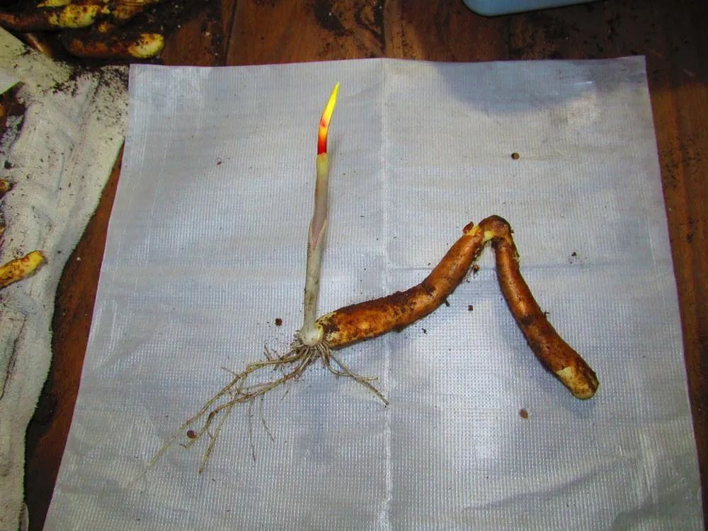 刚发芽的嘉兰百合块茎,芽眼朝上栽种即可