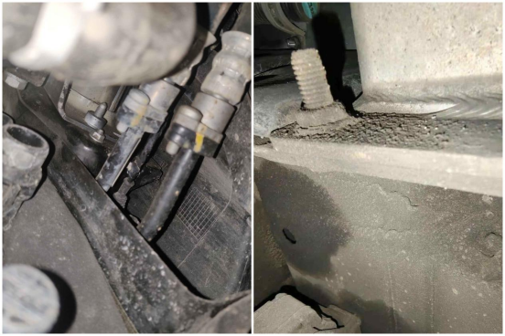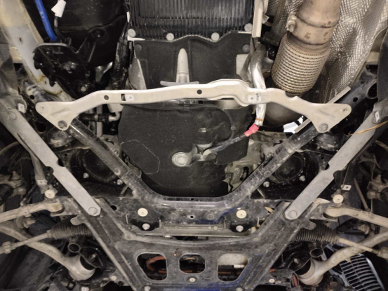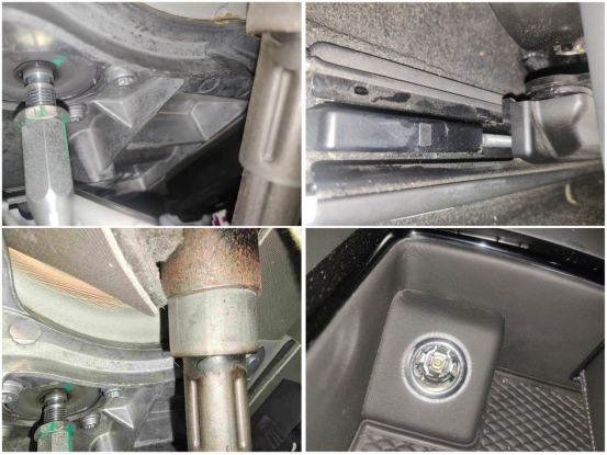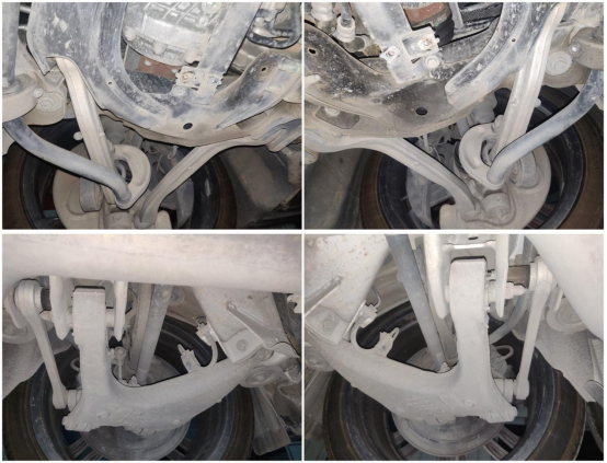 接着我们将车辆升起,检测底盘部分。前后防撞梁无异常。