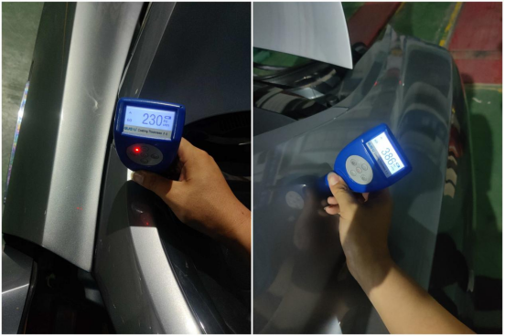 左侧A柱C柱漆面数值稍高,有过补漆,应该是前后翼子板钣金修复时有喷漆,并未伤及结构。