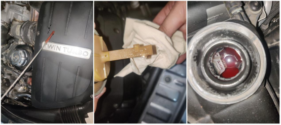 发动机机油、转向助力油、冷却液液面均正常。