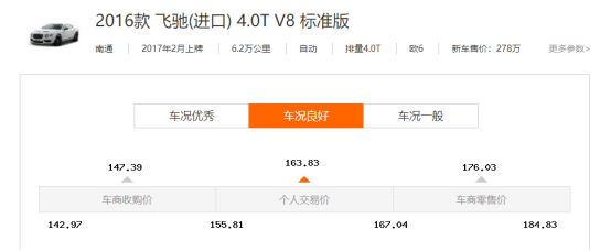 今天的客户是一个40多岁的大哥,之前开的是一辆奥迪A8。最近准备换车,看上了宾利的飞驰系列。奈何全球芯片短缺和疫情原因,新车加价严重,于是大哥便看上了这辆二手的飞驰。这是一辆2016款飞驰4.0T V8 标准版,16年12月生产,17年2月上牌,目前表显6.2W公里。新车裸车价278W,落地300多W,车商报价186W。虽然都是豪华大型车,不得不说,飞驰和A8比起来还是更有牌面,直接拉满。