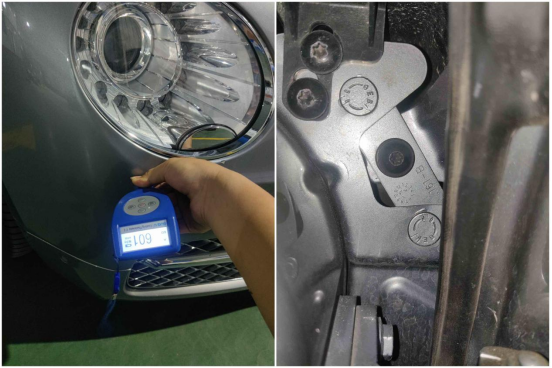 左右前大灯固定螺丝都有拧动痕迹,有过拆卸。