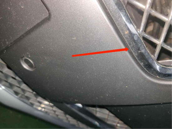 那么话不多说,我们赶紧来检测一下车况如何。首先还是从外观开始检测,前保险杠缝隙处有飞漆,有过补漆。