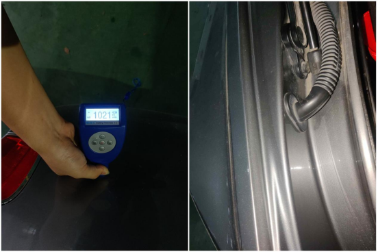左后翼子板漆面数值超过1000微米,有过钣金修复。