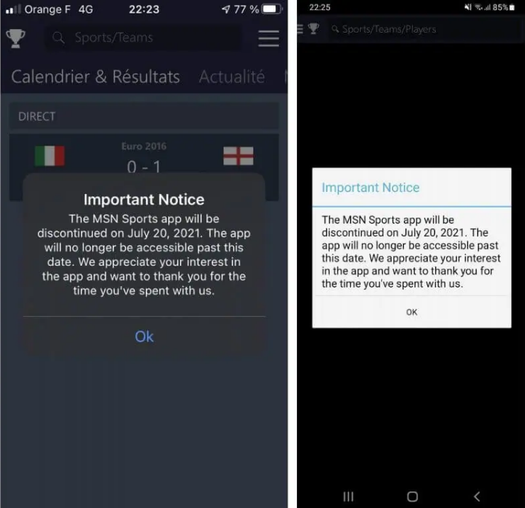 IT之家 7 月 13 日消息 外媒 onMSFT 报道,微软 MSN 体育应用在所有平台上的寿命都已接近尾声。我们上周报道 Windows 10 上的 MSN 体育应用开始显示弹出信息,通知用户该应用将于 7 月 20 日停用,现在类似的信息已经开始出现在 iOS 和 Android 版应用上。