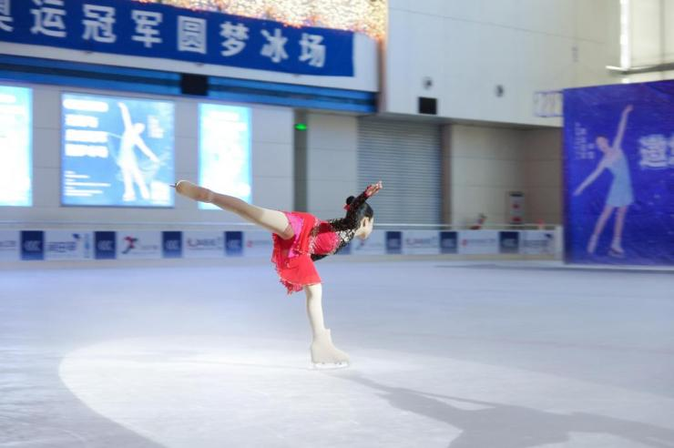 吴佳欣是名10岁小姑娘,她穿蓝色裙子,伴着现场欢快的音乐,表演了一幕又一幕精彩滑行,像一条迷人的“美人鱼”。两年前,她从冰纷万象滑冰场开启了艺术之梦,努力坚持到现在,如今已小有成就。她说,看到申雪老师有点紧张,“她是我们崇拜的对象,以后要勤加训练,像申老师一样为国争光!”