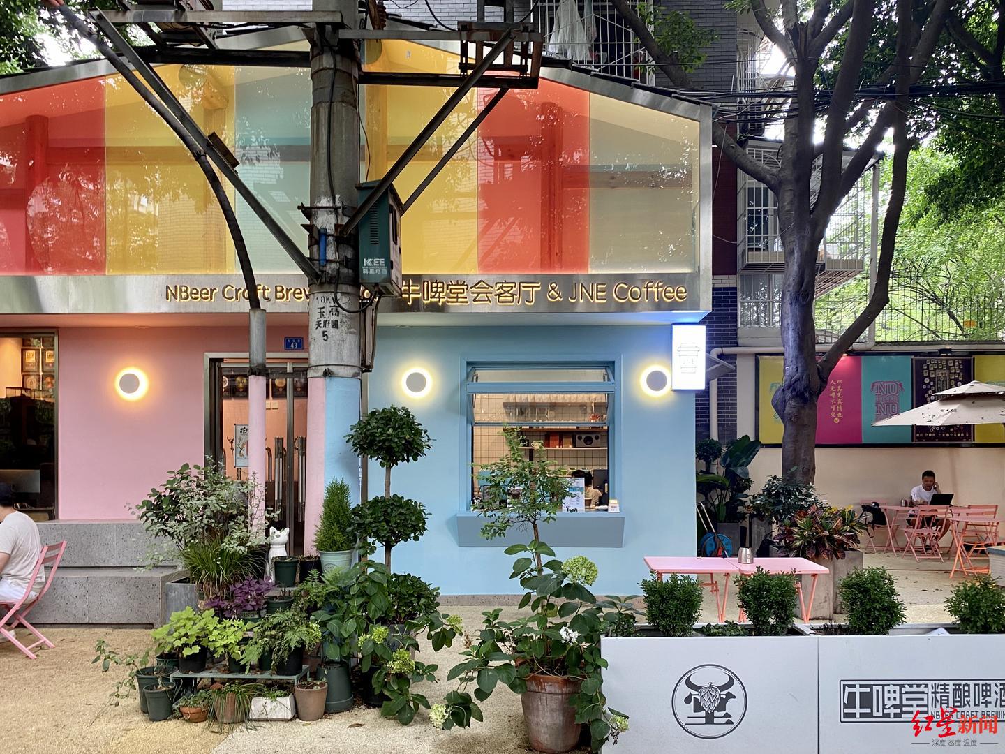 鲜明的色彩、独具风格的场景,占地面积60平方米的小广场,搭配四周暖色围墙,在阳光下显得舒适温馨,位于成都高新区芳草街道白云街43号的“牛啤堂会客厅”,经过改建后成为又一个新晋“网红”打卡地。