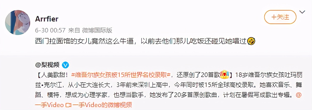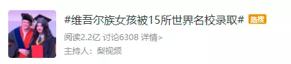 她叫吐玛丽兹•克尔江,18岁。今年被全球15所高校同时录取,相关话题有2.2亿阅读,6308讨论。