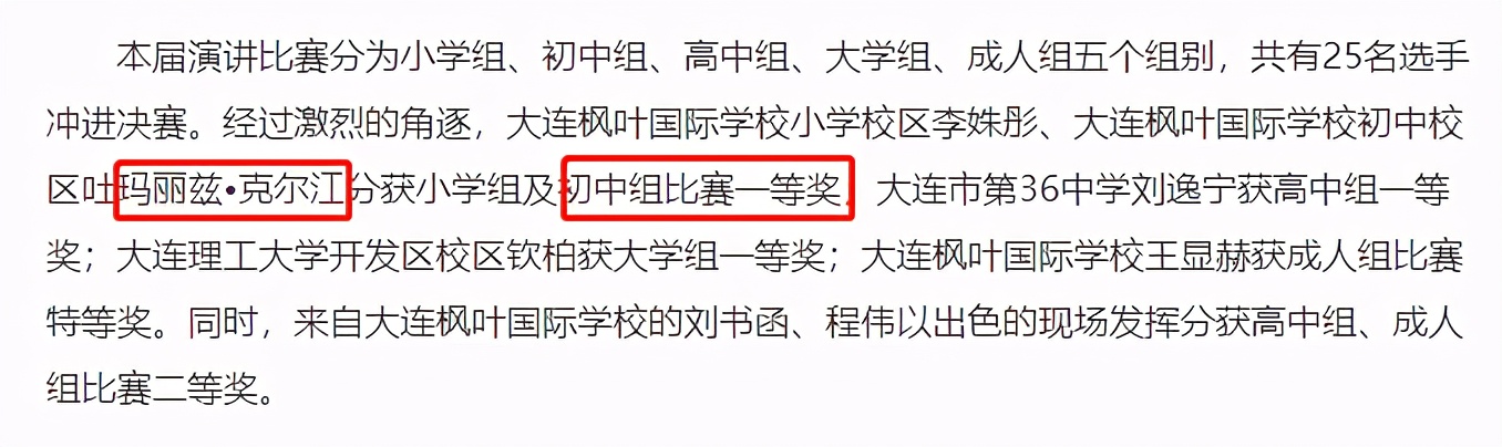 比赛中,吐玛丽兹流利的英语和饱满的演讲情绪征服了在场的评委,毫无意外,吐玛丽兹获得了初中组比赛一等奖。