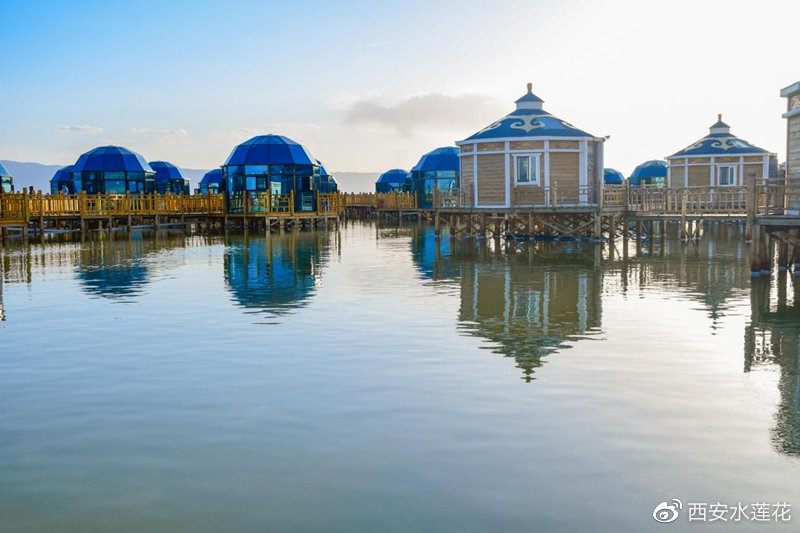 茶卡,藏语意为盐池,以盛产青盐著称于世,它是中国湖盐文化的发源地之一。在天空壹号景区,来自全国各地的游客在湖边拍照“打卡”,好不热闹。茶卡天空壹号建筑多以盐文化为主题,景区内设置了星空广场、成吉思汗实景剧场、影湖星空营地、高原亲子牧场、高原死海漂浮馆等,还有湿地观赏区,景区本着生态保护的原则,敷设了木质栈道,游客可通过栈道观赏盐湖湿地景色。