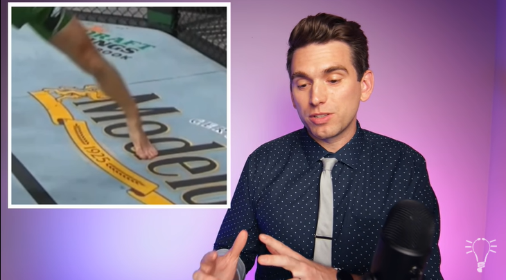 说法是“嘴炮”教练John Kavanagh在采访时提出,指“嘴炮”是踢中了“钻石”的手肘而导致受伤。
