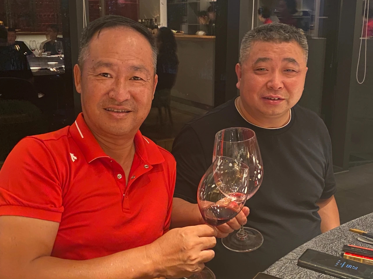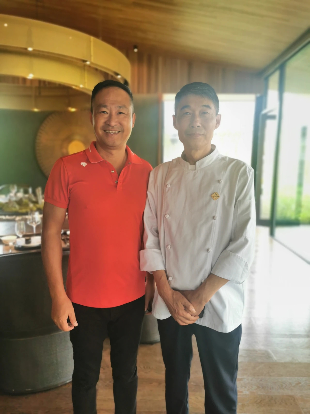 ▲ 川菜大师张元富师傅(右)与作者林卫辉(左)