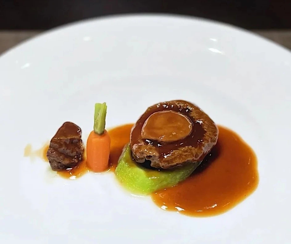 热菜共十道:肝油鲍鱼、雪花鸡淖、软炸荷花、白菜元子、竹笋菇烩芦笋、红烧牛头方、古法蒸黄鱼、苕菜狮子头、干煸鱿鱼丝、回锅甜烧白,都是一百多年前的菜,突出的是鲜和香,几乎不见麻和辣,与我们印象中的麻辣川菜大相径庭。这些菜有个特点,都以软糯口感为主,晚清时代,能吃上这些豪华宴席的,都是达官贵人,上了年纪的人,牙口不好,菜品必须软糯。美中不足的是,热菜必须突出热气腾腾的温度,也许是场地太大,包房离厨房太远,这些菜都缺了些热气腾腾。
