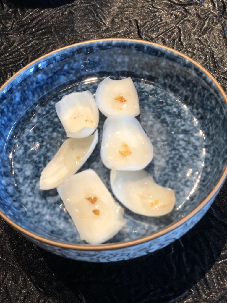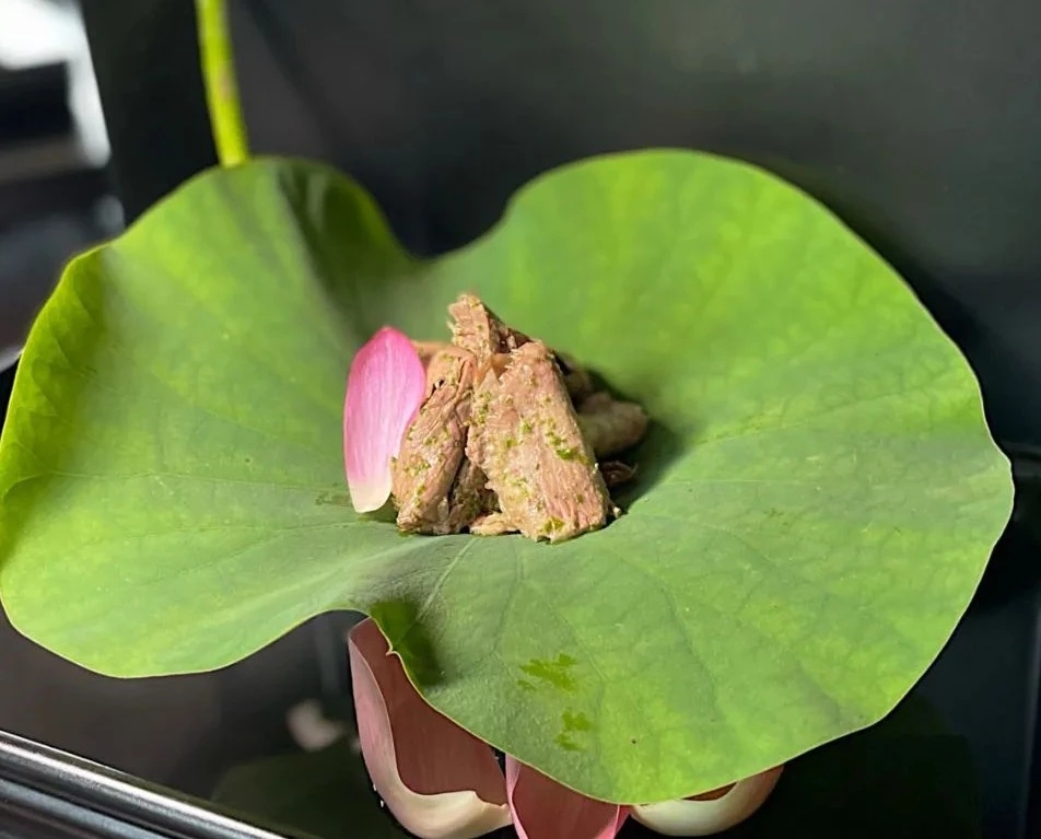 最后的回韵,是纯甜味的甜品葛仙贡米炖雪莲。天山雪莲汤体滋润,产于湖北恩施鹤峰的葛仙贡米,带有蓝藻的幽微咸鲜,以山中野蜜简单提味,做为结尾,巴适得很!