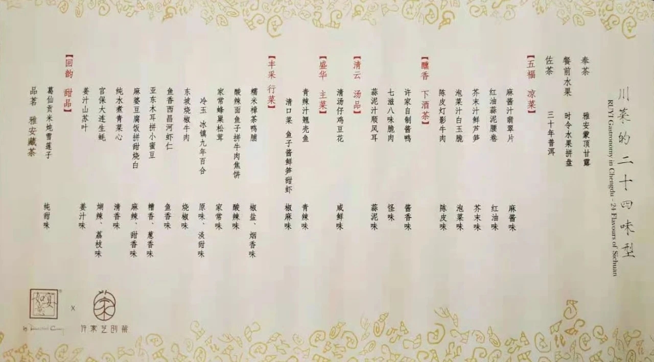 如果你对川菜的印象还是麻和辣,那么,你必须品尝一次由川菜大师许凡主理的许家艺创菜,“如意宴——川菜的二十四味型”。这个如意宴,可以代表川菜的现在。